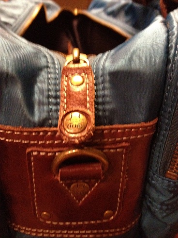 茶の革とターコイズの艶のあるナイロン素材とのコーディネーションが、カジュアル過ぎず気に入りました。デザインもシンメトリーでとてもきれいです。