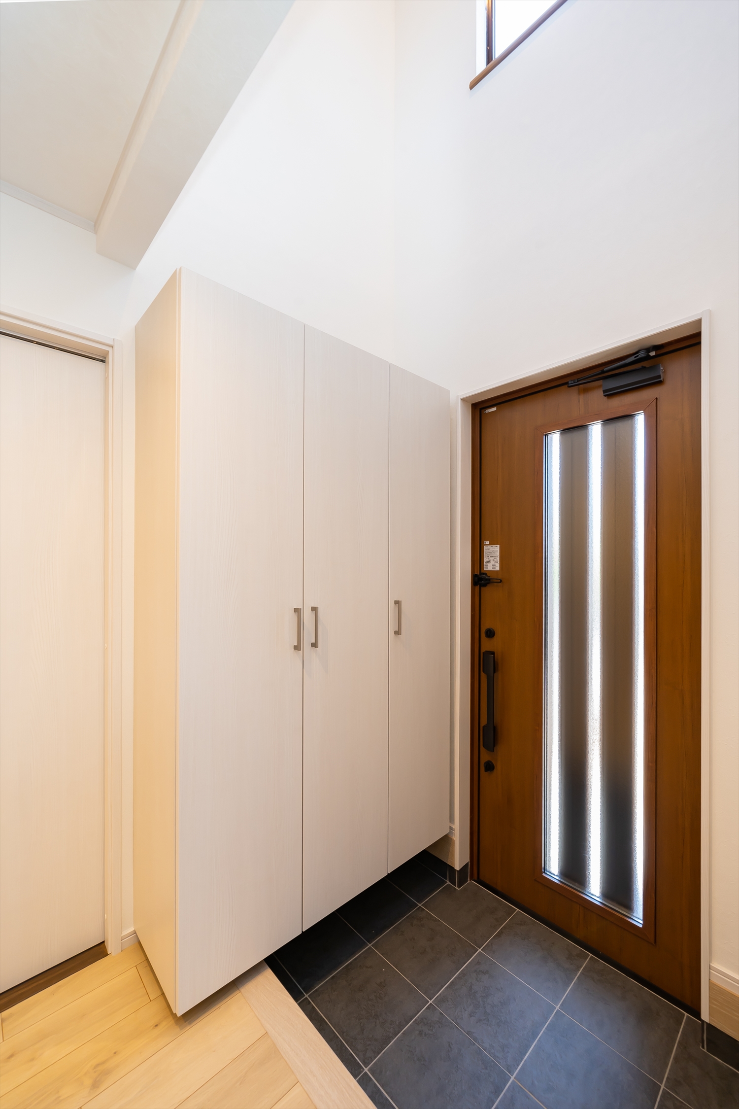 リビングの吹き抜けを活かし、対面二列型のオープンキッチンで開放感もプラスされました。家族の会話が弾む空間になりました。