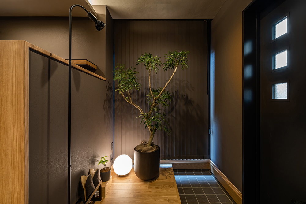 「木の温かみは感じつつ、壁面は深みのある色をベースにしたい」とのご要望で、『ナチュラルなオーク材×コーヒーブラウン』を基調とした統一感のある空間に仕上げました。