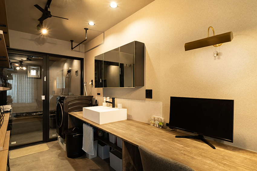洗面台/デスクカウンター:メラミン面材(アイカ)+設備部材(ミラタップ)※大工造作