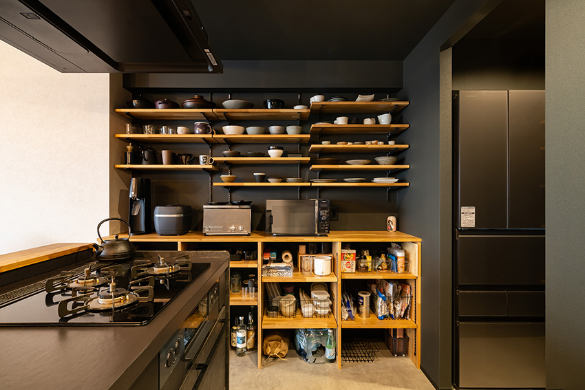 動線と収納を兼用することで空間を無駄なく使いながら、収納物の出し入れのしやすさにも配慮しています。