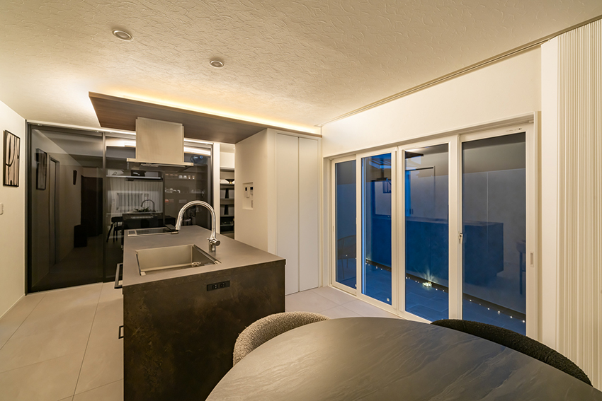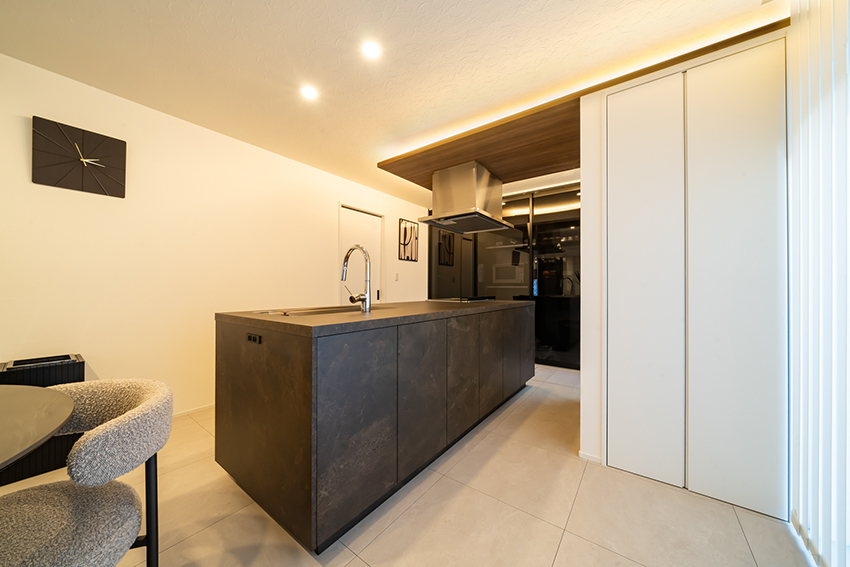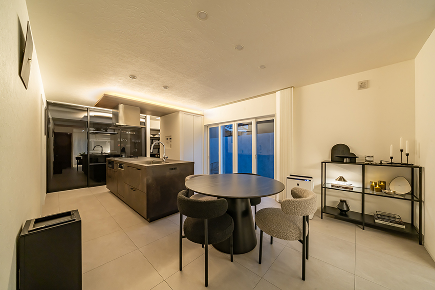 お好みのインテリアにブレがなく、小物ひとつひとつまで厳選し、オシャレで落ち着きある大人空間に仕上がりました。 間接照明やダウンライトの配灯で昼と夜の違った雰囲気を楽しんでいただけるよう、照明計画にもこだわりました。 ゆとりを感じる生活と日常を楽しんでいただいているご様子を伺え嬉しく思います。