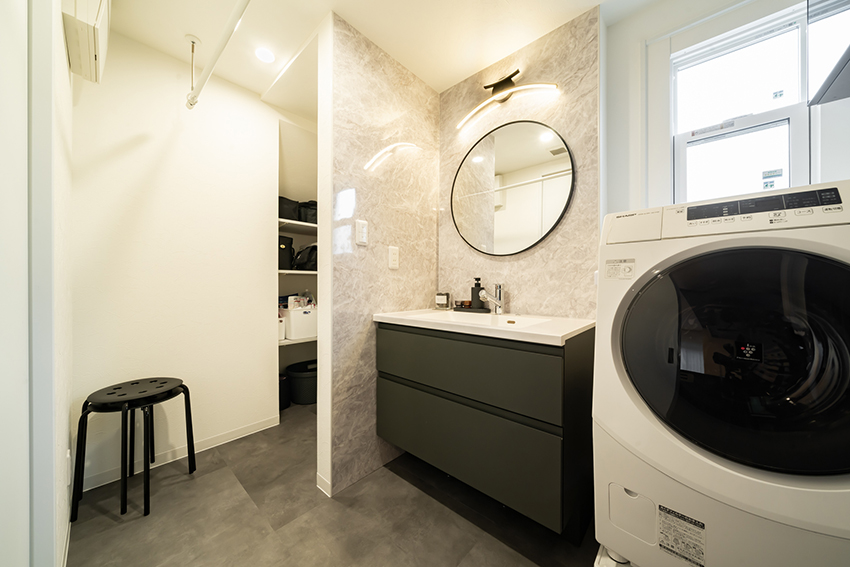 トイレを配置替えして、狭さの気になる洗面室の空間を広げました。日々の生活用品が仕舞える収納場所を確保でき、こちらもスッキリと使いやすくなりました。