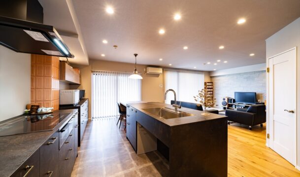 キッチンが暮らしの中心に ご夫婦とペットがくつろげる上質な空間
