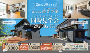 11/29(土)30(日)四街道市│リノベーションモデルハウス同時見学会│紡ぎの家みそら・千代田