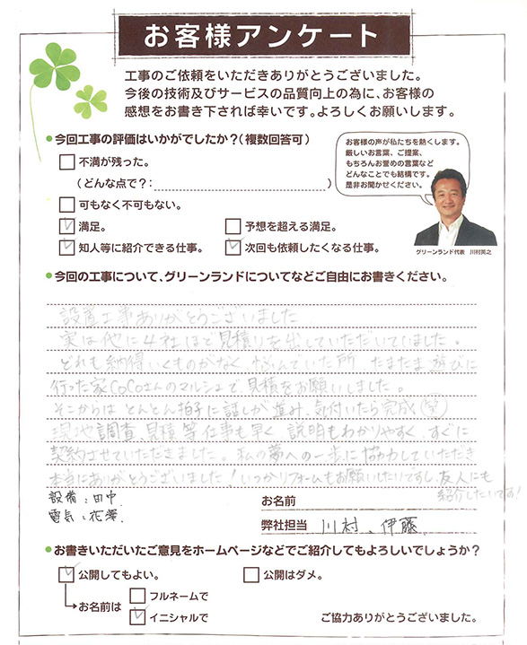 今回の工事をグリーンランドさんに決めたのはスタッフの対応の良さでした。