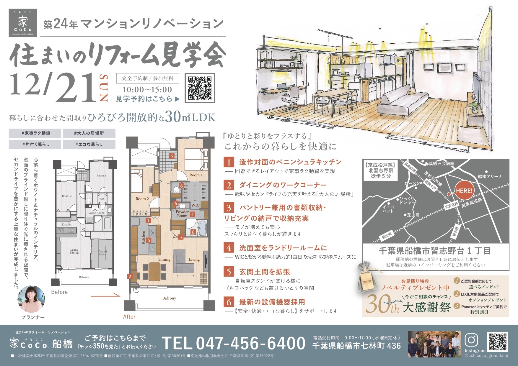 - 12/21(日)船橋市習志野台|\築24年マンションリノベーション /『ゆとりと彩りをプラスする』これからの暮らしを快適に|住まいのリフォーム見学会