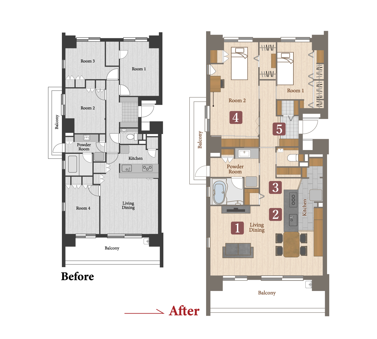 \築20年マンションリノベーション/4LDKから2LDKへ。広さと快適さを