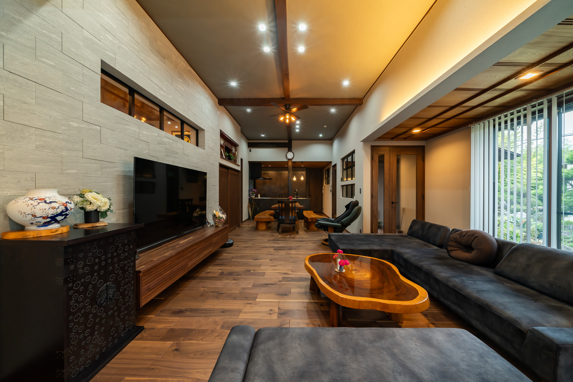 ・家の個性でもある広縁をリビングに取り込み、無垢の天井材や梁を活かした、開放感のある空間としています。