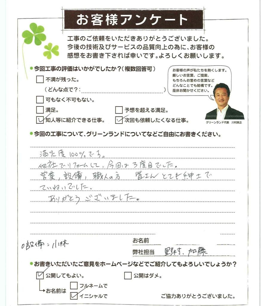 ホーム > お客様の声 > 千葉県千葉市中央区 T様 キッチン・洗面リフォーム